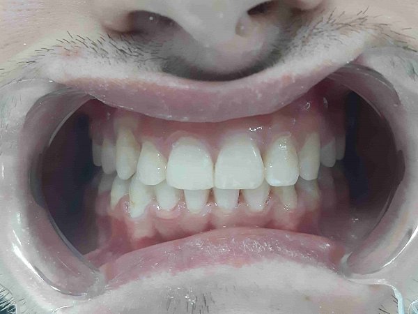 2)Через 4 месяца установка частичной брекет-системы 2 на 4 для выравнивания передней группы зубов;
